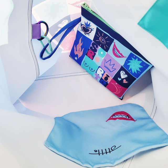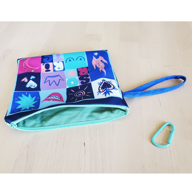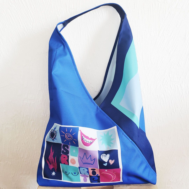 Grand sac imprimé motif Sororité bleu, dans une matière imperméable, imprimé unique car dessiné par Atelier Juliette H. Forme triangulaire, il se porte à l’épaule et il possède 2 poches plaquée à l’interieur : un poche téléphone en haut du sac accessible très facilement et une poche plus grande sur le côté. Avec le sac CABA, vient une pochette dans le même tissu imperméable. Fermée par un zip et doublée intérieur, elle s’attache dans le sac grâce à un mousqueton. Elle est amovible donc vous pouvez la prendre seule ou bien l’avoir avec votre sac, sécurisée car fermée et attachée.